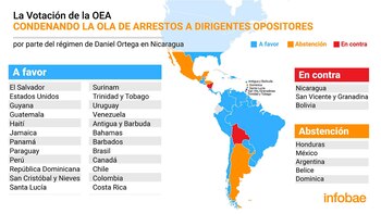 En contra votaron la propia Nicaragua, el Gobierno izquierdista del presidente boliviano, Luis Arce, y San Vicente y las Granadinas, aliado de Venezuela.