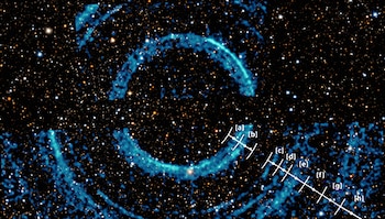 El diámetro de los anillos permitirá a los investigadores determinar las distancias de las nubes de polvo que se utilizaron para crear los anillos de luz. Cuanto más grande es el anillo, más cerca está la nube de la Tierra.