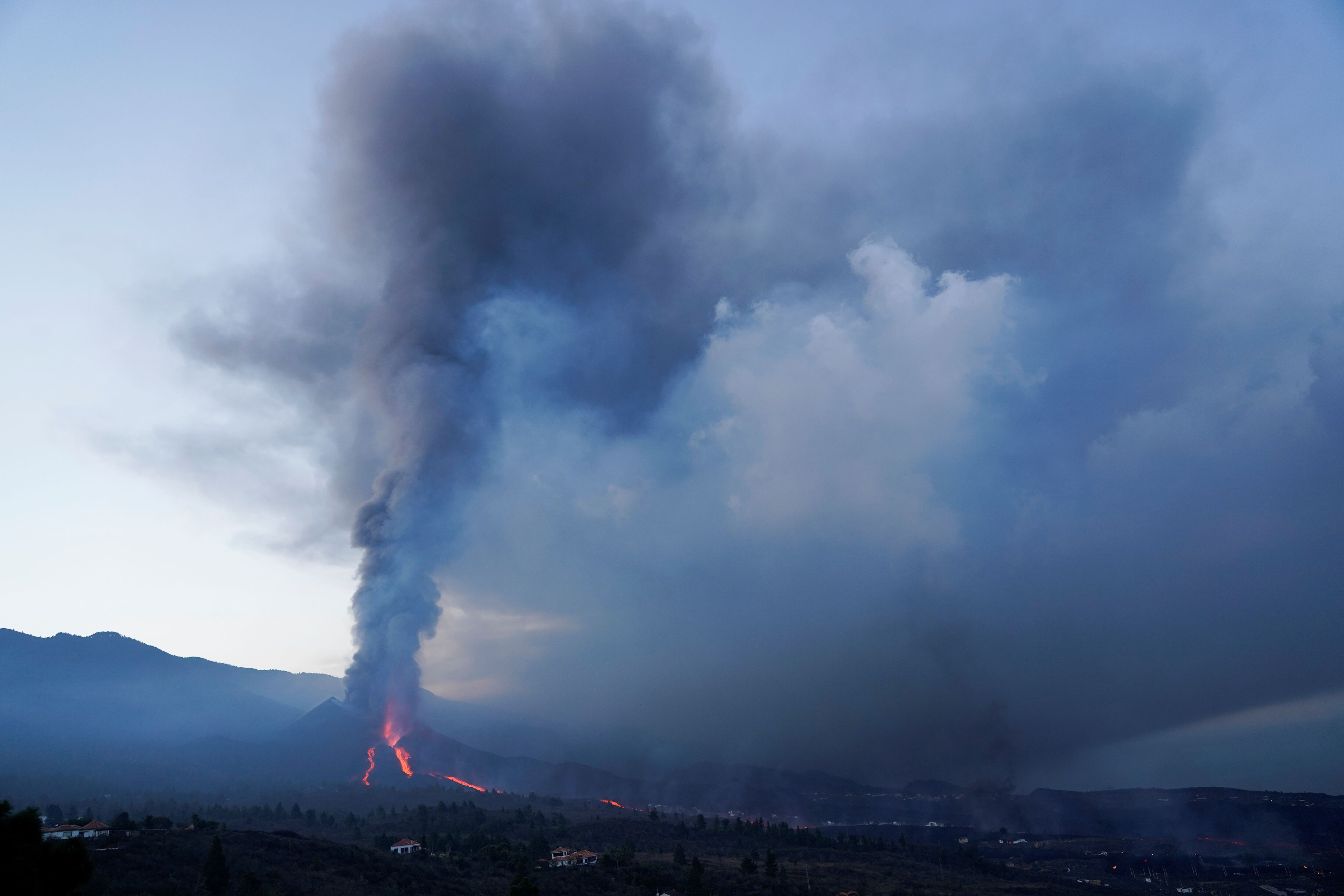 En total son tres coladas de lava las que se han producido con la ruptura del cono volcánico, dos de ellas de menor peligro, ya que tienen poca fuerza, y una tercera que es la que ha asolado un número reducido de casas, y que se está monitorizando, aunque los expertos consideran que por la velocidad con la que desciende daría tiempo a evacuar las áreas necesarias.