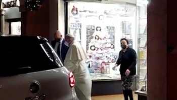 Según el periodista, Francisco estuvo dentro de “Stereosound” poco más de 12 minutos, en los que bendijo a la veterana propietaria del lugar, a su hija y su yerno.