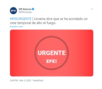 El asesor presidencial ucraniano Myjailo Podoliak informó que se ha alcanzado un acuerdo para un cese el fuego temporal por motivos humanitarios en las negociaciones de este jueves con Rusia.