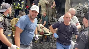 “Hubo ocho cohetes, dos de los cuales impactaron en el centro de la ciudad. Han muerto 20 personas, entre ellas tres niños. Hay un gran, gran número de heridos”, dijo el presidente ucraniano, Volodimir Zelensky, durante un discurso oficial europeo en La Haya.