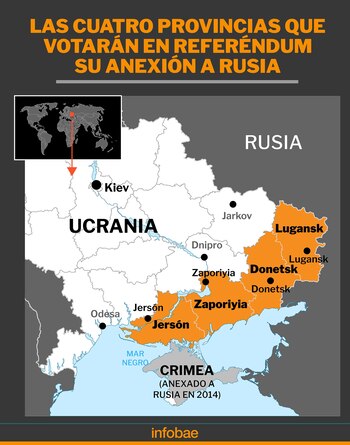 La anexión de territorios es un precedente que Putin estableció con Crimea, la península del mar Negro anexionada ilegalmente por el Kremlin en 2014, tras un referéndum que fue ampliamente rechazado en Occidente y calificado como una farsa, pero que Putin utilizó para justificar su amenaza de que estaba preparado para una guerra total si Ucrania intentaba retomar la península por la fuerza.