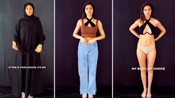 “Todo el mundo tiene opiniones y creencias diferentes y hay que respetarlas. La democracia significa el poder de decidir... Toda mujer debe tener el poder de decidir sobre su propio cuerpo. No estoy promoviendo la desnudez, sino la libertad de elección”, añadió.