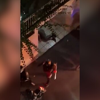Un video filmado por la noche con un celular y publicado en las redes sociales muestra a policías antidisturbios golpeando con una porra y dando patadas a un hombre que yace en el suelo.