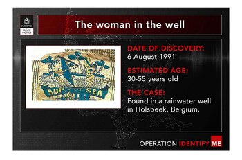 Los encargados de la “Operación Identifíqueme” calculan que conocer los nombres de las víctimas podría derivar en el descubrimiento de los asesinos y determinar si hay algún tipo de conexión entre los casos. “Queremos subrayar que estamos buscando nombres”, advirtió la investigadora policial belga Carolien Opdecam. “La identidad de la víctima es a menudo la clave para desvelar los misterios de un caso”.