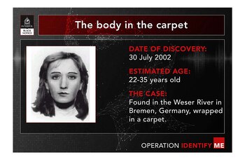 El 14 de octubre de 2001, un recolector de setas encontró el cuerpo de una mujer en la zona pantanosa de Worringer Bruch, en Colonia. El cadáver llevaba allí al menos cuatro meses, pero posiblemente incluso cuatro años. Ya no era posible establecer la causa de la muerte; no se podía descartar un crimen. Su identidad siempre ha sido un misterio.