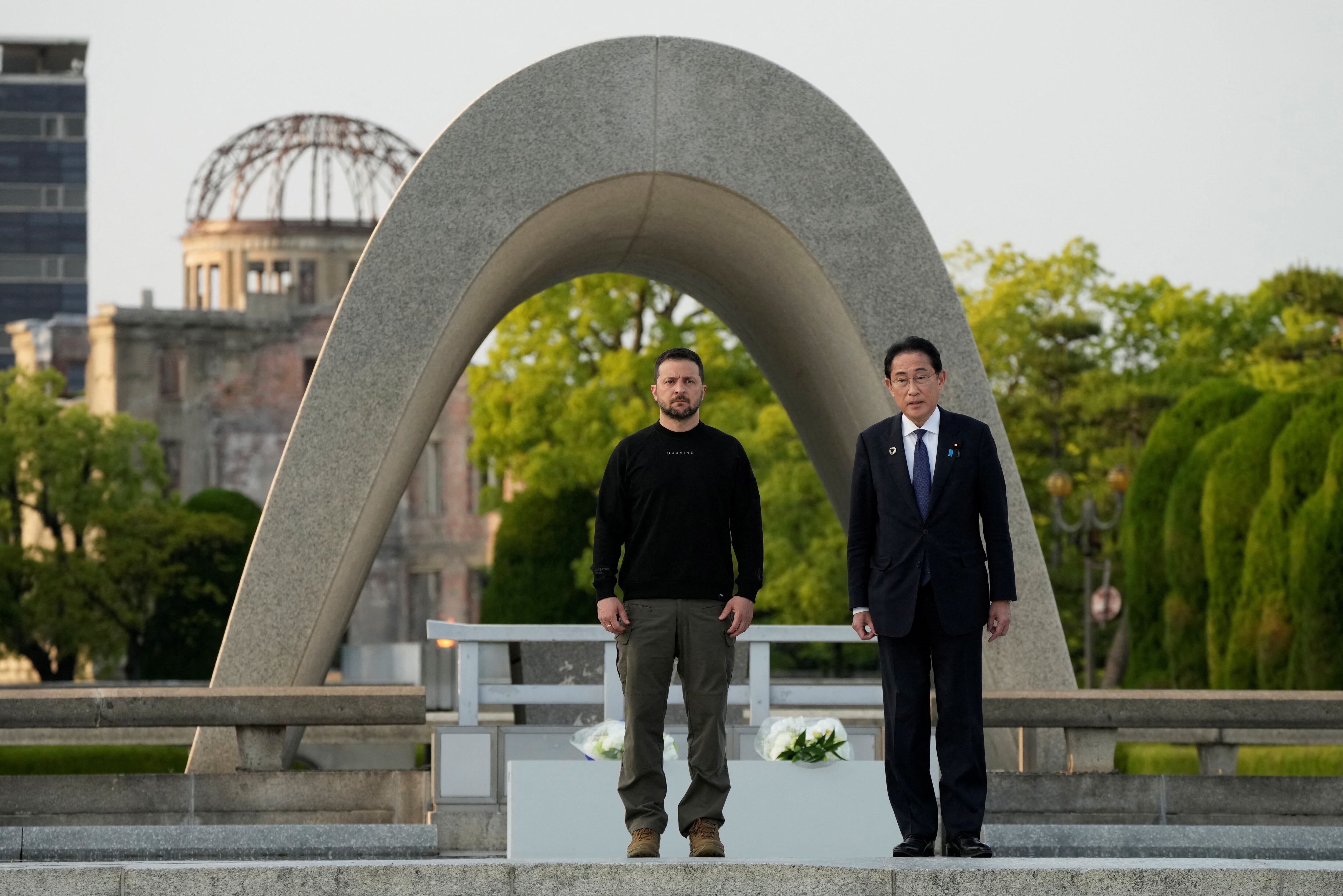 El Presidente ucraniano depositó flores este domingo en un memorial de Hiroshima en recuerdo de las víctimas del ataque con bomba atómica estadounidense de 1945, en un momento sombrío y altamente simbólico.