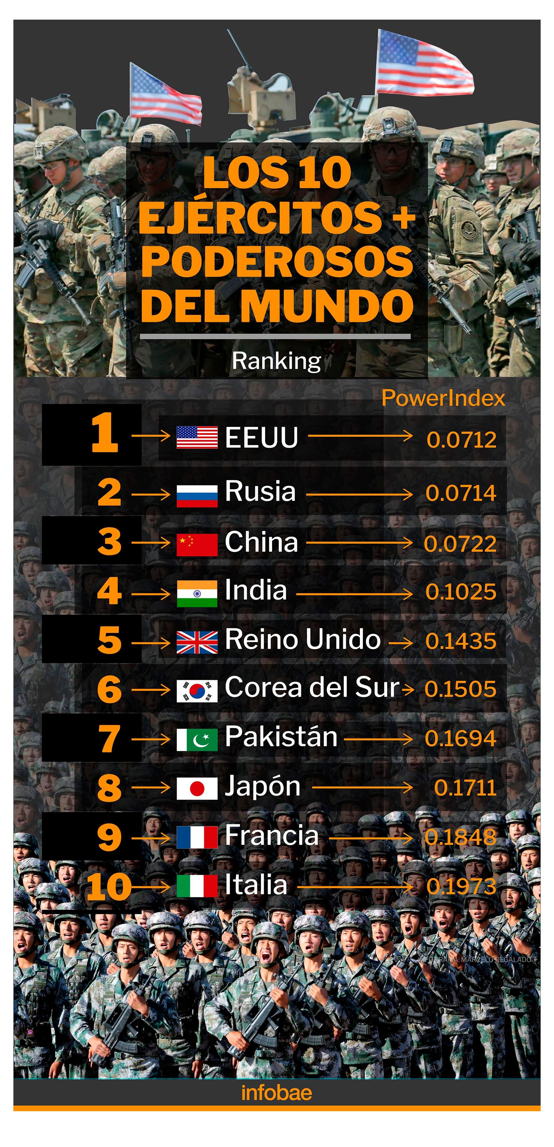 El ranking de los 10 ejércitos más poderosos del globo
