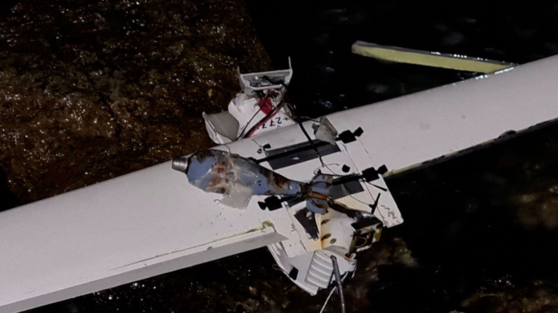 Las televisiones publicaron fotos del aparato hechas por usuarios de las redes sociales que, según testigos, mide unos tres metros y llevaba un artefacto explosivo de entre 50 y 60 centímetros.