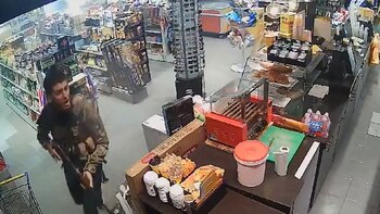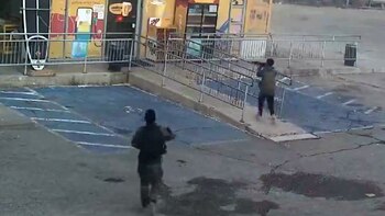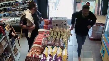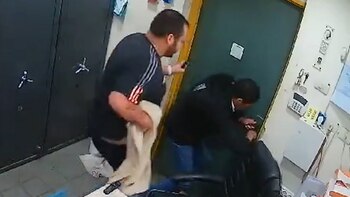 En las imágenes se ve a los hombres huyendo desesperados por la entrada trasera de la gasolinera: hay un breve momento de pánico cuando uno de los hombres forcejea con la llave antes de que consigan abrir la puerta y escapar hacia la unidad de refrigeración.