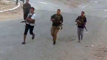El vídeo muestra a dos empleados de la gasolinera -al parecer un judío y árabe musulmán- mientras ven acercarse a los hombres armados disparando a mansalva.