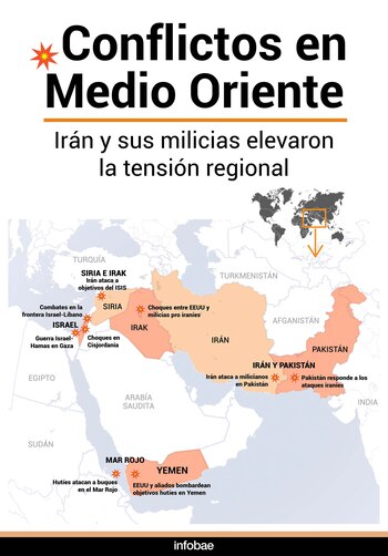 En casi todos los conflictos en Medio Oriente, hay un denominador común: la presencia de Irán. No importa cuál sea la disputa, el régimen siempre se las ingenia para tener algún tipo de participación. Ya sea apoyando a Hamas y a los rebeldes hutíes contra Israel, o atacando objetivos en Irak, Siria y Pakistán, Teherán parece querer no perderse ninguna posibilidad de marcar territorio.