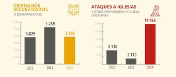 - Sudán: El informe detalla que en Sudán el estallido de la guerra civil en abril de 2023 ha hecho más vulnerables a los cristianos: “Los extremistas violentos se han aprovechado del caos para atacar a los cristianos, apoderándose de sus iglesias y propiedades”.