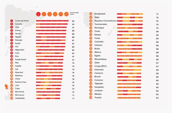 Corea del Norte se mantiene como el país más hostil, seguido por naciones como Somalia, Libia, Eritrea y Yemen, que ocupan los primeros puestos en la lista debido a la presión y violencia ejercidas hacia las comunidades cristianas.