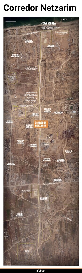 Hamás ha rechazado rotundamente cualquier presencia israelí en Gaza, incluido el corredor de Filadelfia y el corredor de Netzarim, una zona de contención creada por Israel para separar el norte del sur de Gaza. Israel afirma que necesita ese corredor para registrar a los palestinos que regresan a sus hogares en el norte y evitar que los militantes entren en él.