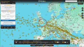 Las grabaciones de pantalla del sitio web de seguimiento de vuelos FlightRadar24, realizadas la madrugada del viernes, mostraron que los aviones evitaban el principal aeropuerto de Londres, que también es el más transitado de Europa y el quinto del mundo. Otra grabación de pantalla, de una zona más amplia, mostró una concentración de aviones sobre el océano Atlántico y Europa, mientras los vuelos eran informados del cierre de Heathrow y desviados a otros aeropuertos.