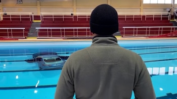 El salvavidas Julien D’Asta Pasetti vigilaba la piscina principal como de costumbre cuando escuchó un estruendo enorme. “El coche había golpeado el terraplén. Pasó por el medio de la ventana de vidrio a una velocidad inimaginable. Saltó sobre dos carriles de natación”, recordó.