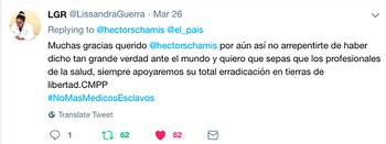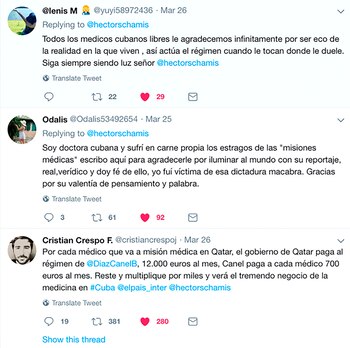 La nota tuvo impacto, medido en términos de lectura, circulación y comentarios. Pero lo más importante de dicha repercusión, y lo que más me llegó, fueron los mensajes de agradecimiento de médicos cubanos por hacer visible una problemática que el régimen cubano ha ocultado por décadas, y que además lo ha hecho con mucho éxito. Los mensajes son pequeños testimonios sobre dichas misiones, en Brasil y en otros países. A continuación una muestra de ellos y concluyo con una reflexión adicional.