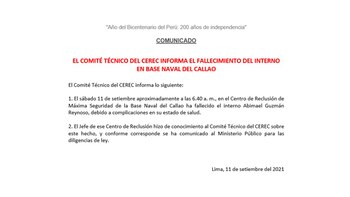 Por su parte, Susana Silva, jefa del INPE, brindó esta mañana en comunicación con Canal N, algunos detalles de los protocolos a seguir tras la muerte del cabecilla de Sendero Luminoso, Abimael. Asimismo, la titular de esta entidad nacional, detalló que el ‘Presidente Gonzalo’, murió en su celda de la base Naval del Perú.