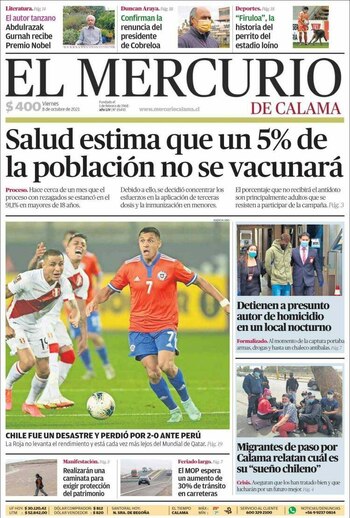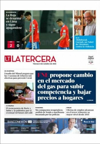 Otra situación es la que se vive en Chile, donde las primeras páginas de los medios de este país no pudieron ocultar la desazón e impotencia por la derrota de su selección en Lima. Todos coincidieron que “estamos más lejos” del Mundial de Qatar y que “empezamos a despedir” a la generación dorada que hace unos años se coronó campeón de la Copa América y era uno de los equipos más poderosos de Latinoamérica.