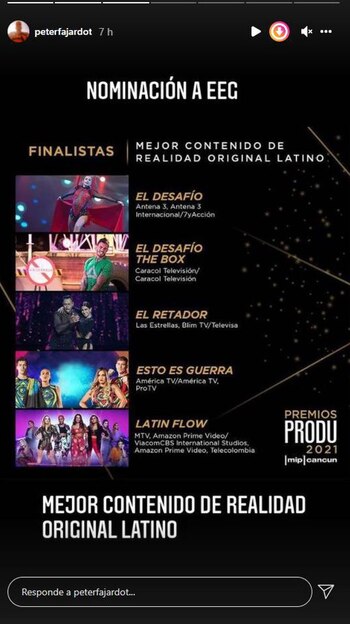 El productor de Esto es Guerra, Peter Fajardo fue nomidado a la quinta edición de los Premios Produ 2021, donde reconocen a los mejores contenidos de la industria televisiva, así como al talento de los profesionales que gestan dichos proyectos. donde se premia a los mejores programas de latinamerica.