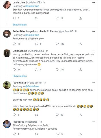 Algunos de los comentarios se refirieron al color pelirrojo de su cabello. En una entrevista, Bellido aclaró que no se pintaba el cabello y que esa característica era la causa de su apodo “Puka” (rojo en quechua).
