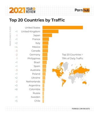 Por octavo año consecutivo, Pornhub lanzó su resumen anual de este 2021. El sitio de videos para adultos muestra las tendencias, los términos más buscados, los actores y actrices más vistos y un recuento de todo lo que ocurrió este año. En lo que se refiere a Perú, no se encuentra dentro de los 20 países que más tráfico le dan a la web, lista que encabeza Estados Unidos, seguido de Reino Unido y Japón. En la lista aparecen países de Latinoamérica como México, Brasil, Argentina, Colombia y Chile.