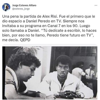 Otro colega que compartió con Alex Risi fue Jorge Esteves, quien recordó una anécdota con el desaparecido Daniel Peredo.