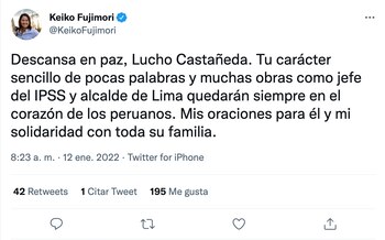 La excandidata presidencial, Keiko Fujimori, manifestó sus condolencias y sus obras realizadas mientras ejerció como alcalde de Lima.