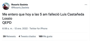 La ex ministra de la mujer y excongresista Rosario Sasieta, utiliza las siglas “QEPD”.