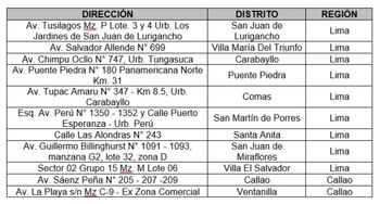 En las regiones de Ayacucho, Apurímac, Áncash, Cajamarca, Cusco, Ica, Junín, La Libertad, Loreto, Piura, Puno, y Ucayali también se han priorizado agencias estratégicas: