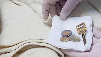 Tras las imágenes que arrojó la endoscopia, se pudo observar que en el estómago del hombre había monedas de cinco soles, un sol y 50 céntimos, así como una llave y un objeto extraño.
