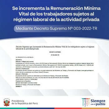 Además, impactará directamente en las empresas del sector agrario, donde el monto del sueldo mínimo es empleado como base para el cálculo de sus remuneraciones en la Bonificación Especial por Trabajo Agrario (BETA), que equivale al 30% de la RMV.