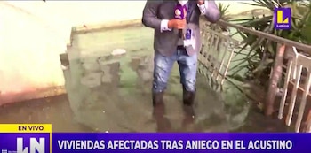 Esta versión fue corroborada por el reportero del canal en mención, quien al intentar entrar a la vivienda con botas de jebe, se tropezó y casi se hunde ante la gran altura del agua empozada.