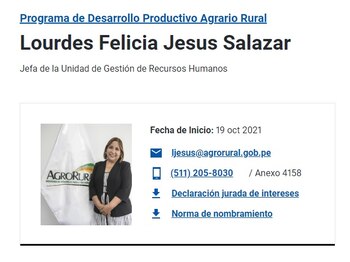 Con esta carta de presentación, Huamaní se encargó de nombrar a sus camaradas en puestos estratégicos. Seis días después de asumir las riendas de Agro Rural, decidió colocar a la abogada Lourdes Jesús Salazar como nueva jefa de la Unidad de Gestión de Recursos Humanos.