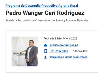El 1 de febrero se oficializó a Luis Camara Gonzales como jefe de la Sub Unidad de Finanzas de Agro Rural. Se inscribió en Perú Libre el 3 de enero. De otro lado, el 8 de abril, Ángel Elías Pardo Agreda fue nombrado en la jefatura de la Sub Unidad de Infraestructura de Producción y Comercialización Agropecuaria de la entidad que está bajo la tutela del Ministerio de Desarrollo Agrario y Riego.