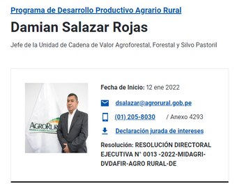 Cinco días después nombraron a Damian Salazar Rojas como jefe de la Unidad de Cadena de Valor Agroforestal, Forestal y Silvo Pastoril. Pertenece a las filas de PL desde el 3 de enero de este año. En esa línea, Pedro Cari Rodriguez asumió la jefatura de la Sub Unidad de Conservación de Suelos y Praderas Naturales el 14 de enero.