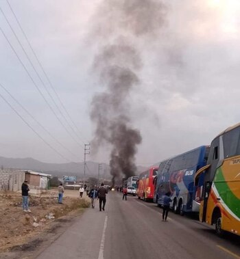 09:55 Decenas de vehículos quedaron varados debido al paro indefinido que estába provisto para hoy día lunes 4 de julio La Panamericana Norte fue bloqueada desde las 4:00 a.m. en el distrito de Olmos, en Lambayeque. La vía fue bloqueada con piedras y con la quema de llantas que impidió el pase de los vehículos menores y de carga pesada.