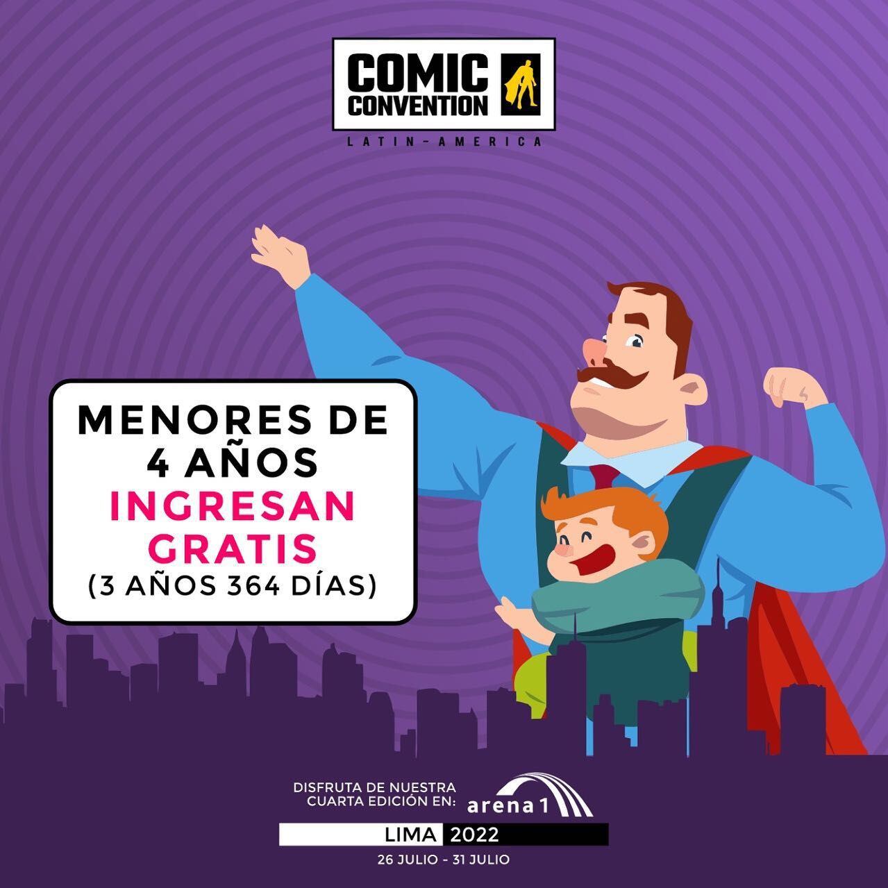 De acuerdo a la organización del evento, los menores de cuatro años se encuentra excluidos de pagar entrada al evento, por lo que podrás ir con tu hijo, nieto o sobrino a la Comic Convention Lima 2022.