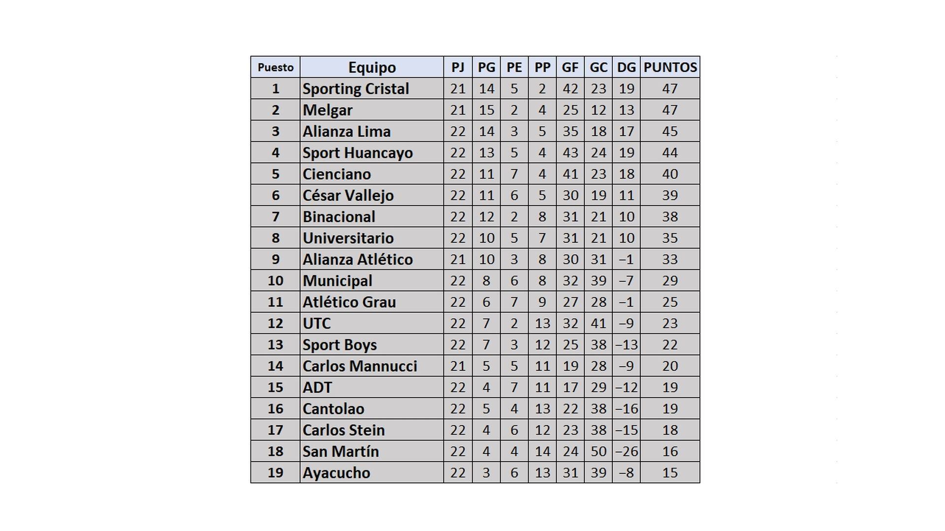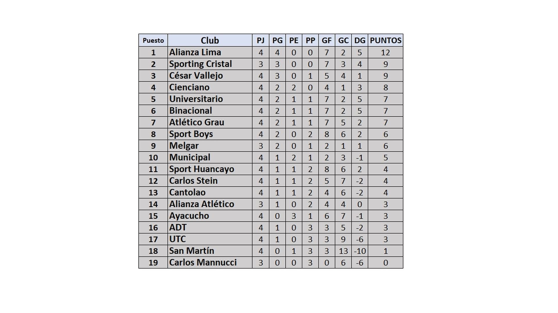 Tabla de la Liga 1: este jueves 27 de julio se completó la fecha 4 del Torneo Clausura. Alianza Lima es el líder del segundo campeonato del año, mientras que Sporting Cristal ocupa el primer lugar de la tabla Acumulada.