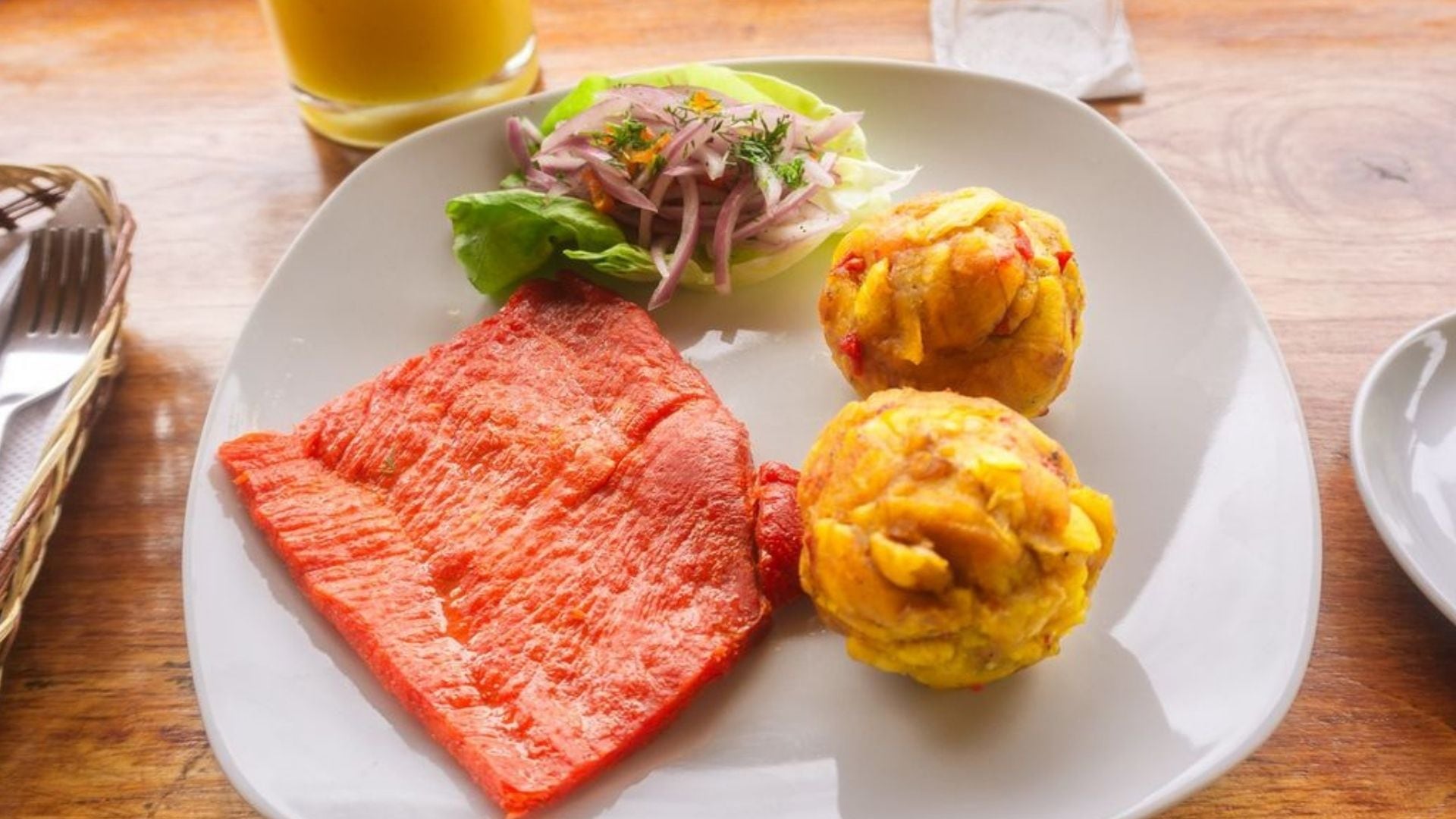 El tacacho es uno de platos típicos de la selva peruana y se caracteriza por su sabor incomparable. Algo tan sencillo como plátano verde frito y aplastado en una masa redonda, aderezada con manteca de chancho y acompañada con cecina, termina siendo un momento de placer para los amantes de la buena comida.