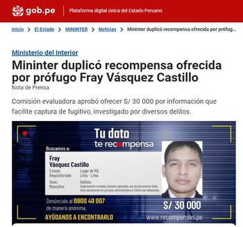 Fray Vásquez Castillo es uno de los prófugos del gobierno de Pedro Castillo que es buscado de manera intensa por la Policía Nacional. Un nuevo dato podría dar con el paradero del sobrino del presidente que es investigado por el Ministerio Público por presuntamente haber cometido el delito de colusión agravada y organización criminal por el caso Puente Tarata.