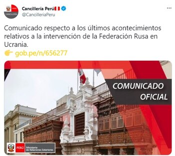 El Gobierno de Pedro Castillo también reiteró el llamado a las partes involucradas en el conflicto “a un cese de todas las hostilidades y al inicio de negociaciones destinadas a la búsqueda de una solución pacífica, de conformidad con la Carta de Naciones Unidas y el Derecho Internacional”.