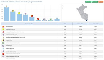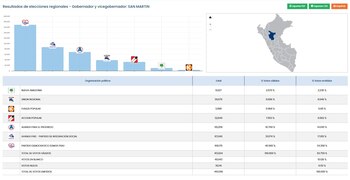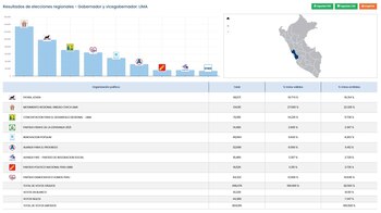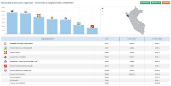 Además, según la Ley de Elecciones Regionales, para que un candidato sea proclamado ganador debe obtener no menos de 30 % de votos válidos. Si ningún candidato logra ese porcentaje en la primera vuelta electoral, los dos candidatos más votados participan en una segunda vuelta o balotaje que se realizará entre noviembre y diciembre de este año.