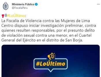 La Fiscalía de Violencia contra las Mujeres de Lima Centro dispuso este miércoles iniciar una investigación preliminar sobre un caso de violación sexual al interior del Cuartel General, en las instalaciones conocidas como el Pentagonito (San Borja).