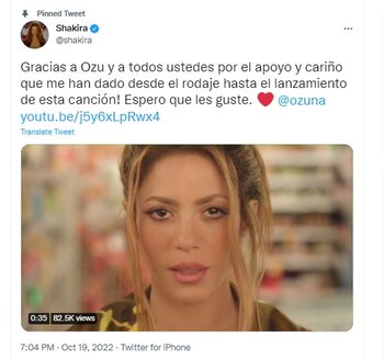Tras el estreno este miércoles 19 de octubre, Shakira sorprendió en sus redes sociales con un agradecimiento a Ozuna por ser parte de este proyecto. Además, no dudó en hacer lo propio con sus seguidores, quienes han estado pendientes de cada detalle antes del estreno.