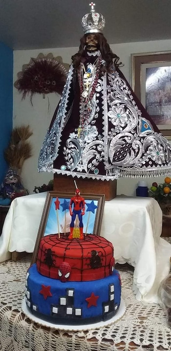 El esqueleto, de unos 50 cm de altura, fue heredado por otra familia de la comunidad, la cual se encargó de difundir el primer milagro, además de proporcionarle vestimenta y una corona. La primera impresión se puede asociar a una representación cultural del Niño Jesús, a diferencia de que se trata de un conjunto de huesos acomodados en una urna, con una peluca larga y ojos de cristal de color celeste. Se construyó una pequeña capilla a su nombre, donde curiosos llegaban a conocerlo.
