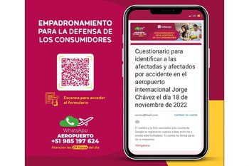 Palacín precisó que, a través de la Autoridad Nacional de Protección del Consumidor se ha puesto a disposición un padrón que recogerá datos relevantes para tal fin. Además, exhortó a las entidades competentes, como el Organismo Supervisor de la Inversión en Infraestructura de Transporte de Uso Público (Ositran), Lima Airport Partners, Corpac, Dirección General de Aeronáutica Civil (DGAC), facilitar información para identificar a otros posibles afectados.