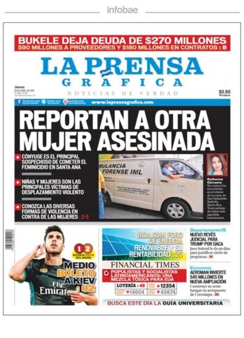 La prensa gráfica, El Salvador, 26 de abril de 2018